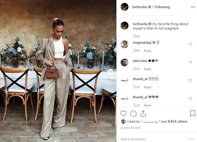 Në këtë postim një ndjekëse i shkruante Lorit se të jesh shtatzënë është gjëja më e bukur që mund t’i ndodhë një femre. Pas disa minutave, Lori e fshiu postimin për të cilin mesa duket është penduar.