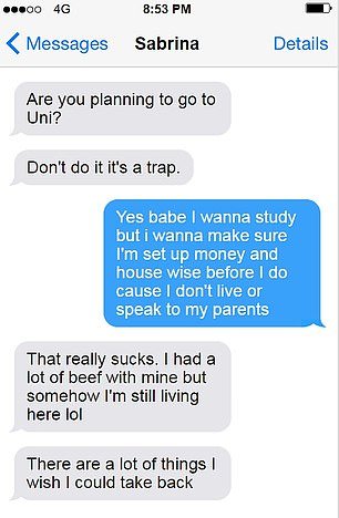 “Sapo qava. Kam qenë vërtetë e mërzitur sepse mami më thotë gjithmonë ku*vë”, i shkruante Sabrina shoqes.