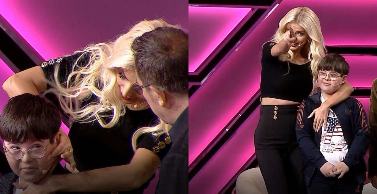Kur Vilsoni pa moderatoren nga ekrani u gëzua pa masë dhe vrapi për ta përqafuar. Marina e përqafon, i thotë që është shumë i bukur dhe madje e puth në faqe, duke i lënë një shenjë me buzëkuq.