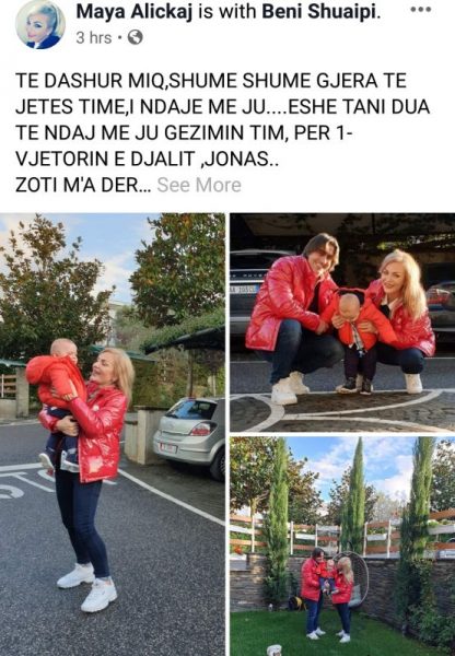 Ditën e sotme Maya feston 1-vjetorin e lindjes së djalit të saj, Jonas. Këngëtarja e muzikës popullore është treguar shumë e rezervuar me publikimin e imazheve të djalit gjatë këtij 1-vjetori, por sot si rrallëherë ka postuar disa imazhe shumë të ëmbla të tij. Ajo ka postuar disa foto në të cilat shihet se vogëlushi është rritur shumë dhe ka kombinuar veshjen me Maya-n dhe partnerin e saj. Me rastin e ditëlindjes këngëtarja i ka bërë dhe një dedikim djalit, duke e cilësuar si një engjëll që ndriçoi shpirtin e saj. “Të dashur miq, shumë shumë gjëra të jetës sime i ndaj me ju… Edhe tani dua të ndaj me ju gëzimin tim për 1-vjetorin e djalit, Jonas… Zoti ma dërgoi në momente të vështira, si një engjëll që më bëri dritë në shpirtin tim të lënduar, nuk mund të kishte kompesim të përsosur. Edhe 101 bir”, ka shkruar Maya në postimin e saj.