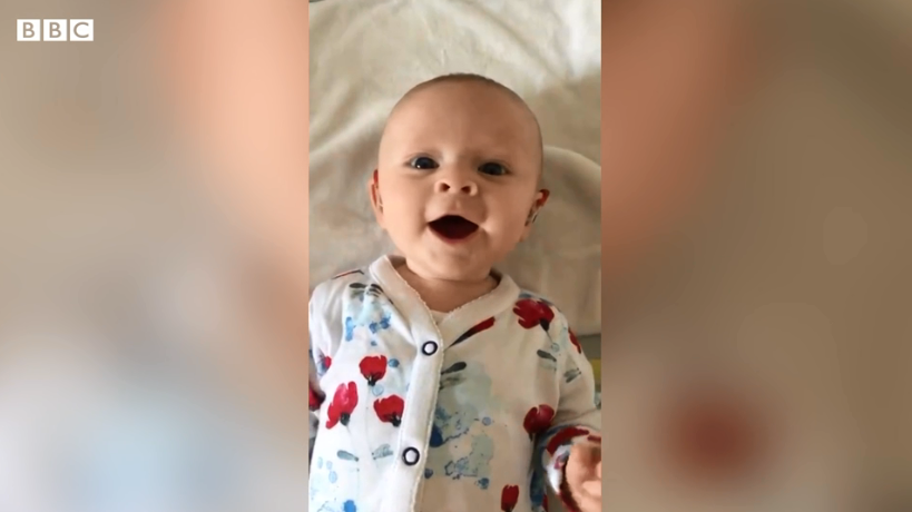 Vogëlushja është katër muajshe dhe prindërit e saj zbuluan se është e shurdhër në Shtator. Në të dy veshët e saj, doktorët kanë vënë aparate dëgjimi. Në video, Georgina fillon të qeshë menjëherë sapo dëgjon zërin e nënës.