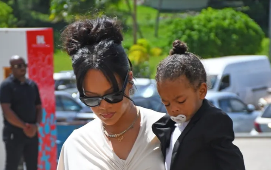 Rihanna u fotografua duke mbajtur djalin e saj, Riot, ndërsa Rocky e ndiqte nga pas duke mbajtur në krah RZA-n, ndërsa hynin në sallën e sportit “Garfield Sobers”, ku u zhvillua ceremonia e përkujtimit.