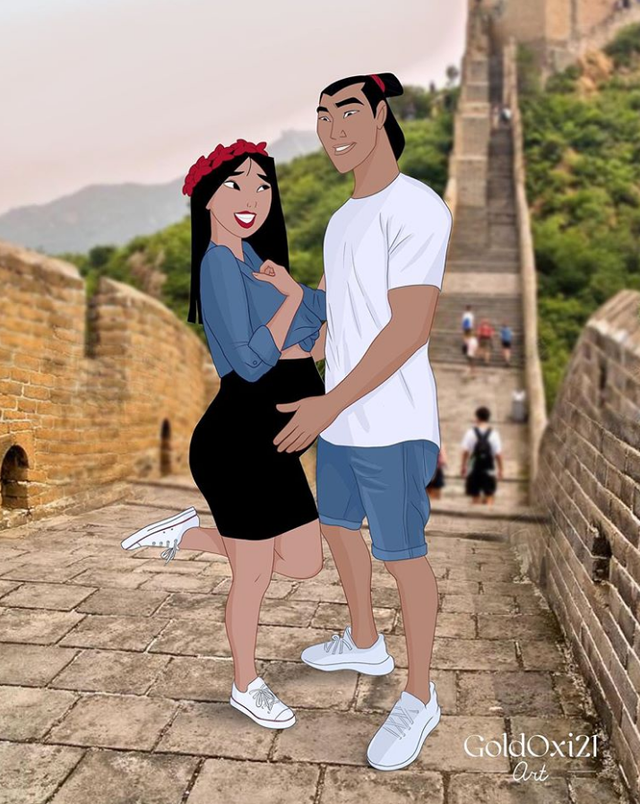 Pasi kemi parë shumë filma vizatimorë të Disney-t, shumë prej nesh e kanë pyetur shpesh veten se çfarë fshihet pas atij fundit të lumtur. Një artiste ruse, e quajtur Oksana Zolotareva Pashenko, na jep një shans të shikojmë jetën çifteve të famshme të Disney-t dhe familjeve të tyre pas asaj që kemi parë në filma. Princeshat e animuara për herë të parë mund t’i shohim me barkun e rrumbullakosur, në pritje të ëmbël…