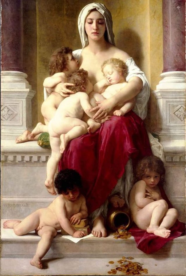 Burimi i vetëm prej nga ata e marrin atë që u duhet në jetë është ëma e tyre, është e perëndishmja, që piktori e ka trajtuar si një shenjtore, si një amanet që ka marrë mbi vete në përjetësi një grua, një nënë.