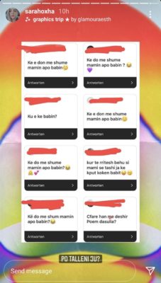 Në llogarinë e saj, Sara Hoxha ka vendosur së fundmi të bëjë një “ask question” për ndjekësit. Këta të fundit kanë pasur mundësinë të pyesin Poem, megjithatë një prej pyetjeve më të përsëritura dhe që i ka bërë shumë përshtypje Sarës ka qenë ajo se cilin nga prindërit do më shumë Poem.