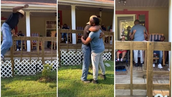 Ky është momenti rrëqethës kur një baba 70-vjeçar kapërcen një gardh për ta përqafuar djalin e tij ushtarak, të cilin nuk e kishte parë prej dy vitesh.