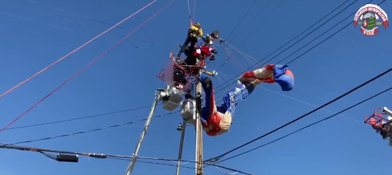“Kur mbërritën zjarrfikësit Santa po varej në njërën anë të linjave elektrike, por nuk kishte rrezik të binte në tokë sepse ishte i lidhur me rripin e sigurimit,” tha Vestel.