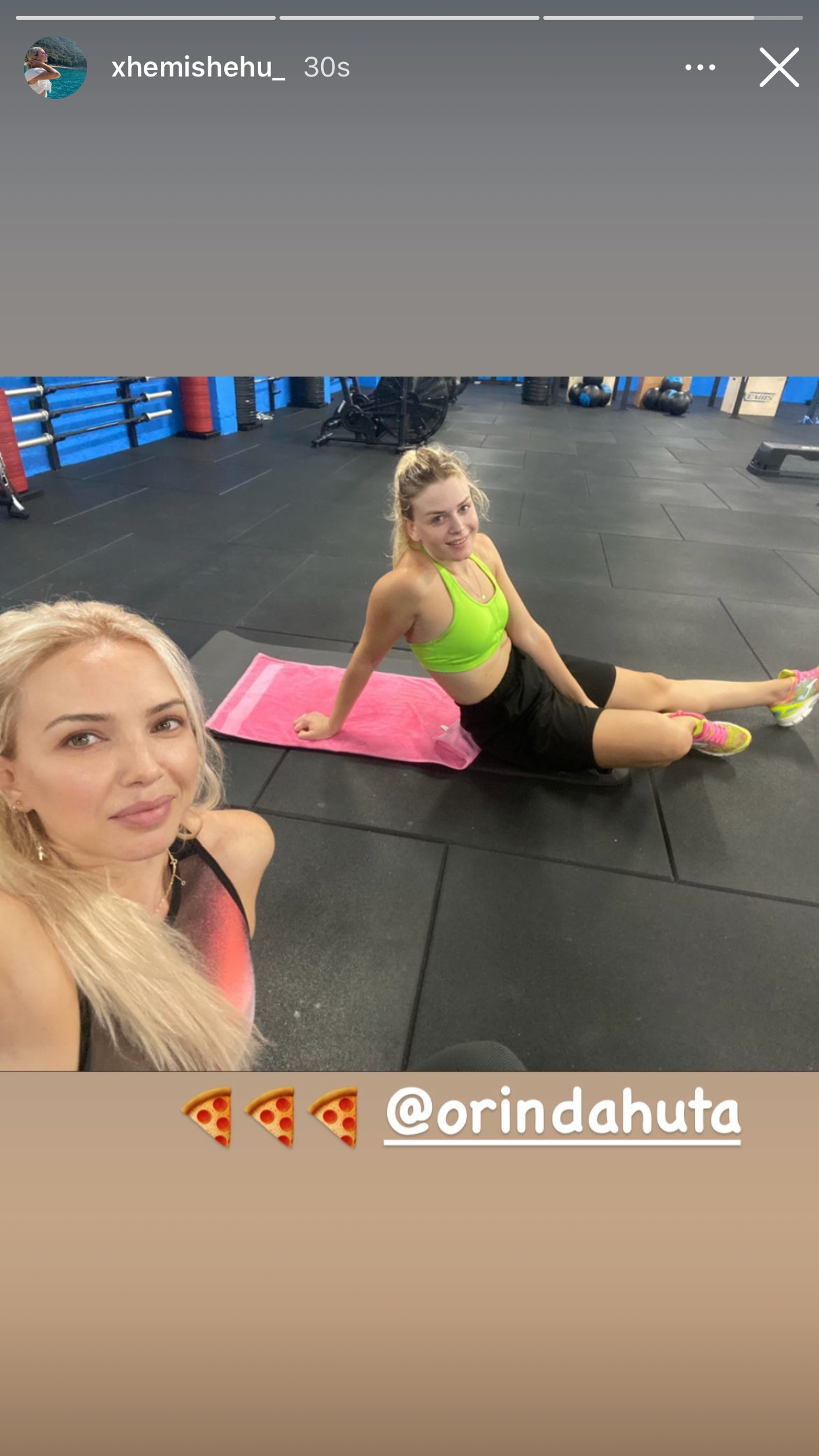 Në përgjigje të të gjithë thashethemeve të qarkulluar në rrjet, Xhemi ka postuar një foto nga palestra me Orindën duke e shoqëruar me emoji pica. Kjo si për të thënë që Orinda nuk është shtatzënë por nëse ju duket se barku është i rrumbullakosur, mund të jetë thjesht ndonjë kile më shumë.