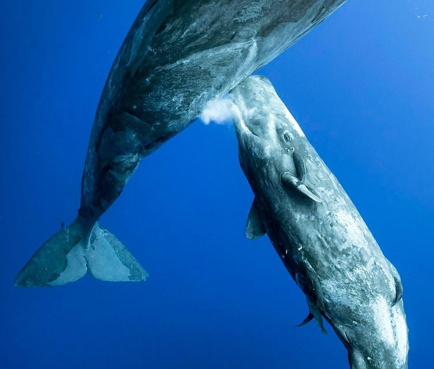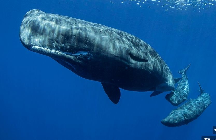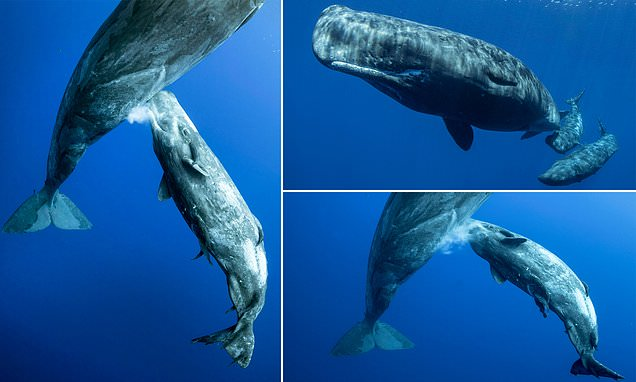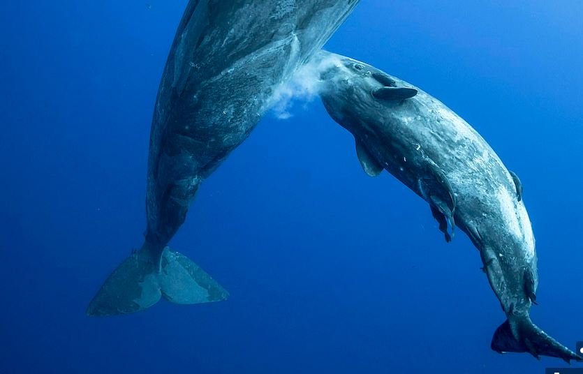 Një fotograf ka kapur imazhe të pabesueshme të një balene ‘sperme’ të stërmadhe, që ushqen këlyshin e saj nën ujë.