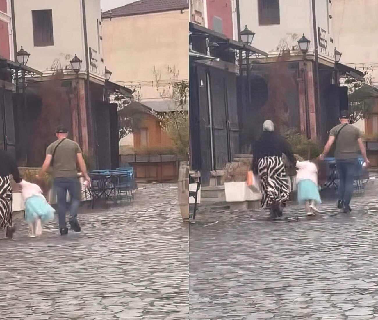 Vajza mbahej për dore nga nëna e saj, e cila nuk reagoi në asnjë moment të dhunës së ushtruar nga i shoqi ndaj të miturës, ndërsa vazhdojnë rrugën.