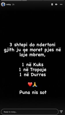 “3 shtëpi do ndërtoni të gjithë ju që morët pjesë në lojë mbrëmë. 1 në Kukës, 1 në Tropojë dhe 1 në Durrës. Puna nis sot”, shkroi Noizy dhe kaq u desh që kuptohet ku shkuan paratë e fituara.