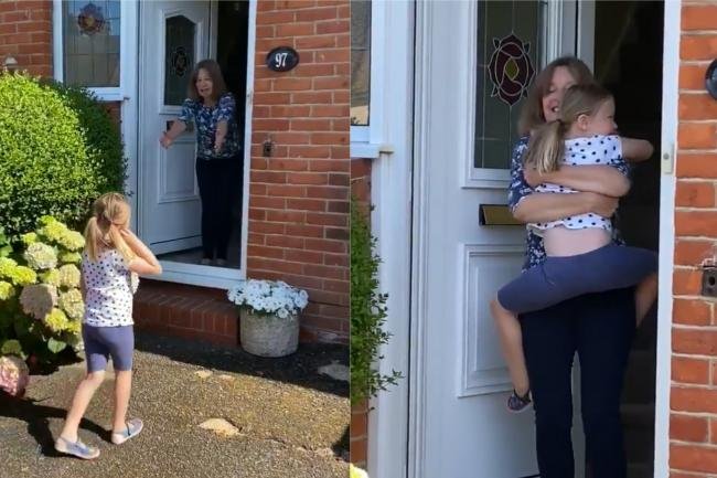 Heidi pesëvjeçare, nga Worthing, shkëmbeu një përqafim emocional me gjyshen e saj të shtunën, teksa babai I vogëlushes me kamerën e tij, u kujdes që të mbetej një moment I paharueshëm.