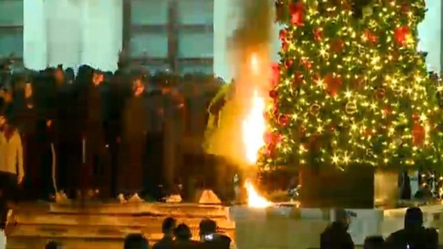 Protestuesit i vënë flakën pemës së Krishtlindjeve