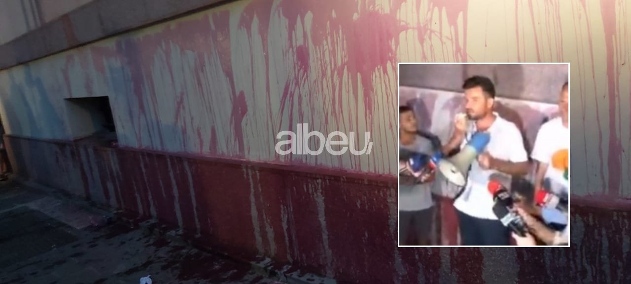 Në protestën për Jonadën, qytetarët kanë lyer muret e Ministrisë së Brendshme me bojë të kuqe, si shenjë për të reaguar fort pas gjakut që uniformat blu po u marrin qytetarëve.
