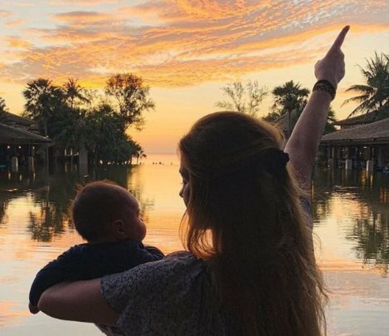 Ajola dhe Kajan janë nisur në një udhëtim sot. Vendin se ku nuk e dimë, por Ajola zgjodhi të postojë një foto shumë të ëmbël nga avioni ku shfaqet dora e saj që prek xhamin dhe dora e vockël e Kajanit që prek mamin teksa të dy shijojnë pamjen mes reve.