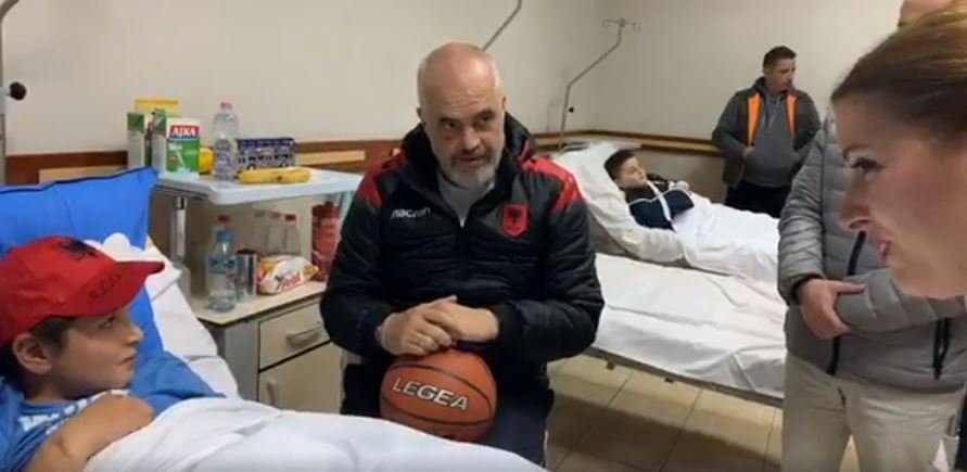Kryeministri Rama u përpoq të sjellë pak atmosferë në dhomën e vogëlushëve, për tu larguar disi mendjen nga drama dhe tragjeditë që kanë kaluar, duke u premtuar dhe dhurata.