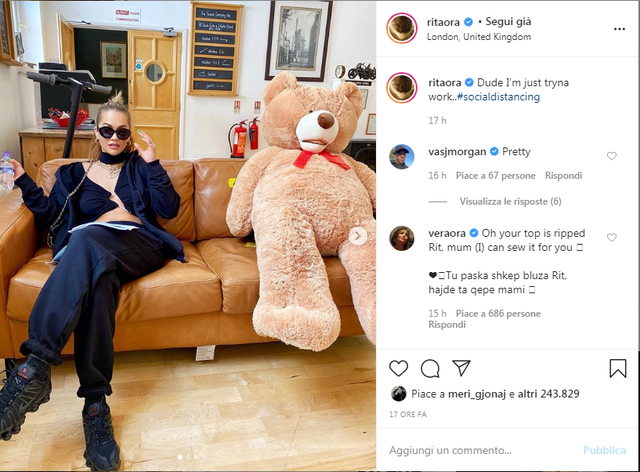 Rita Ora, është një nga këngëtaret më të famshme në botë. Kohën e karantinës ajo e kaloi duke u marrë me projekte të reja muzikore. Njëkohësisht duke publikuar për fansat dhe foto të shumta në rrjete sociale, në të cilën ka qenë tepër aktive.
