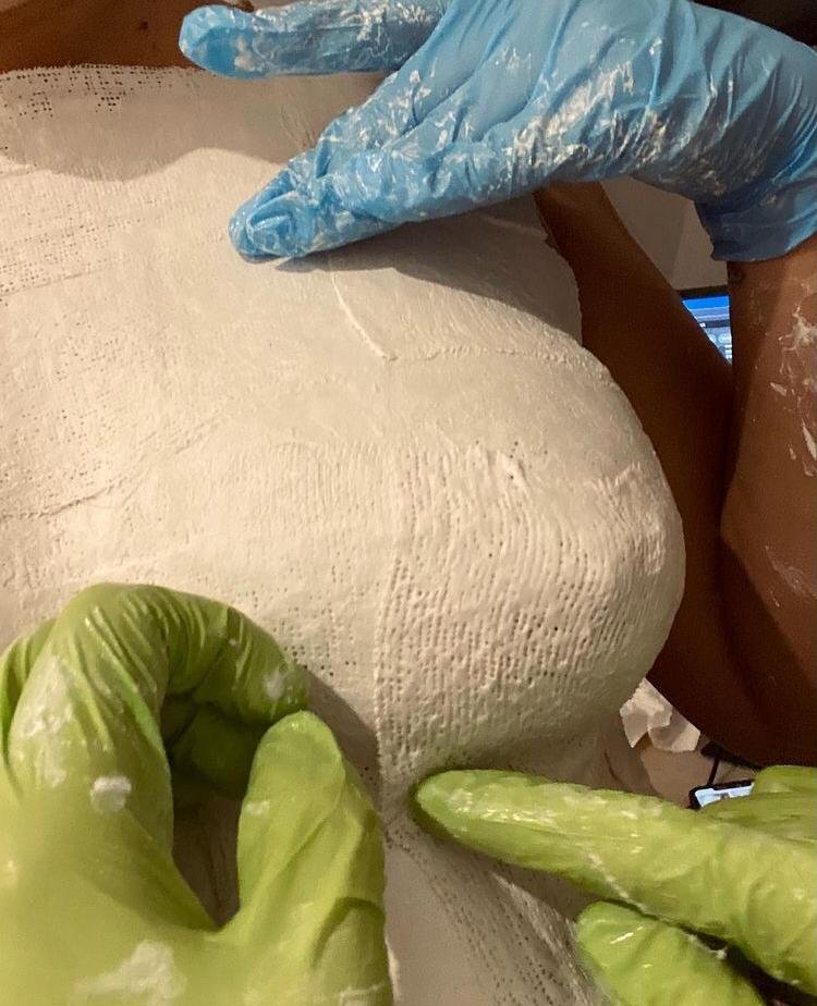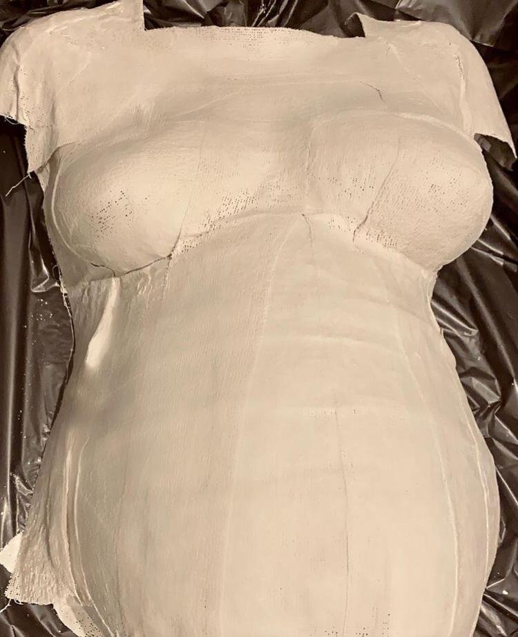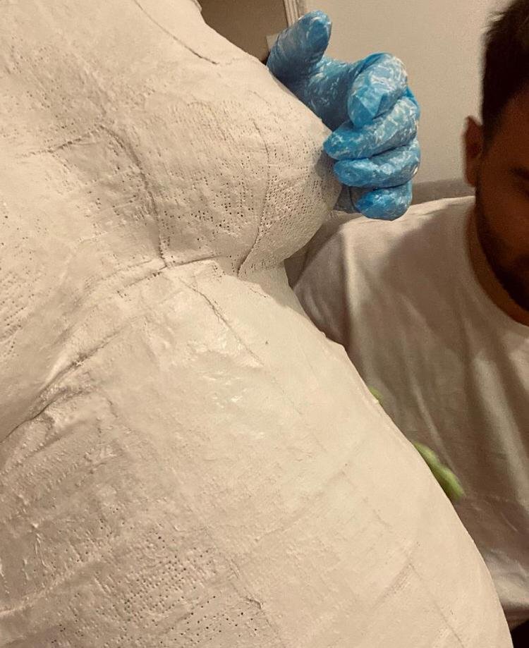 Këtë herë, bukuroshja ka zgjedhur të ruajë si kujtim formën e trupit nga ndryshimet që ka pësuar, me barkun e rrumbullakosur. Ajo ka postuar në Instagram disa foto nga proçesi i marrjes së formës së trupit dhe më pas për ta kthyer me siguri në një skulpturë shumë të dashur.