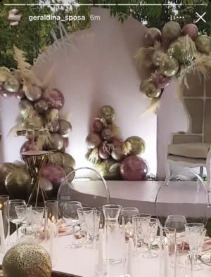 Momentet e pakta të postuara nga festa tashmë janë bërë virale për shumë arsye. ‘Geraldina Sposa’ kishte krijuar një re të vogël ngjyrë rozë bashkë me detajin e një poltroni që i ngjan një krevati fëmijësh. Më tej arredimi është mbushur me topa, mes natyrës, e aty pranë tavolina me dekor minimalist, por të bukur./revistawho.com