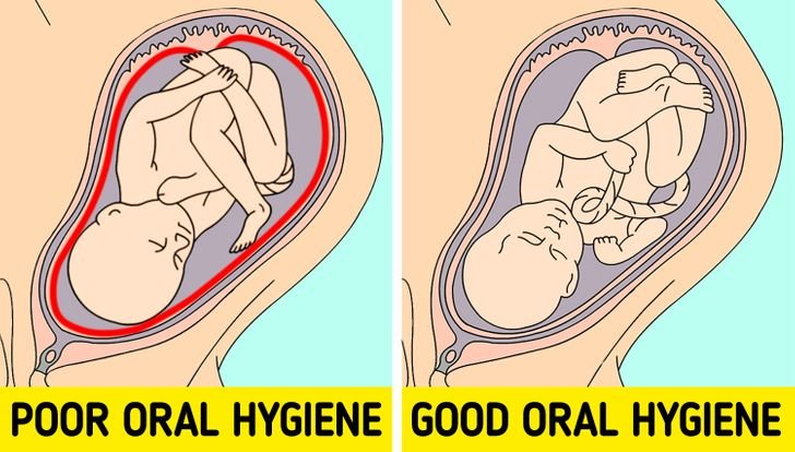 Të kesh një gojë të pastër dhe të shëndetshme mund të jetë shumë e rëndësishme, ndërsa jeni shtatzënë, sepse mban larg infeksionet e mishit të dhëmëbve që mund të prekin foshnjën. Infeksionet të tilla mund të çojnë në peshë më të ulët të lindjes, pasi që potencialisht mund të shkaktojë inflamacion të placentës. Ënjtja e placentës pengon rritjen e foshnjës në bark.