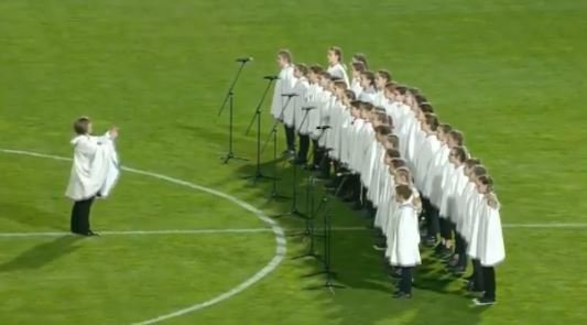 Pavarësisht vështirësisë me gjuhën shqipe, kori i vajzave arriti t’ia dalë, duke marrë duartrokitjet e tifozëve shqiptarë dhe jo vetëm, të gjithve që ishin në stadium.