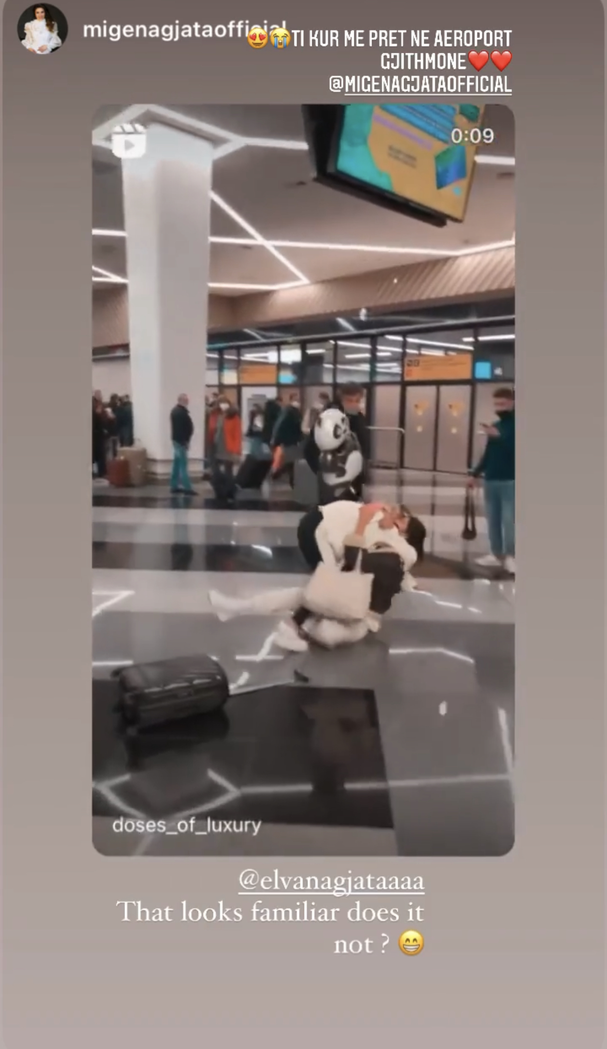 “Ti kur më pret në aeroport gjithmonë”, i ka shkruar Elvana në video.