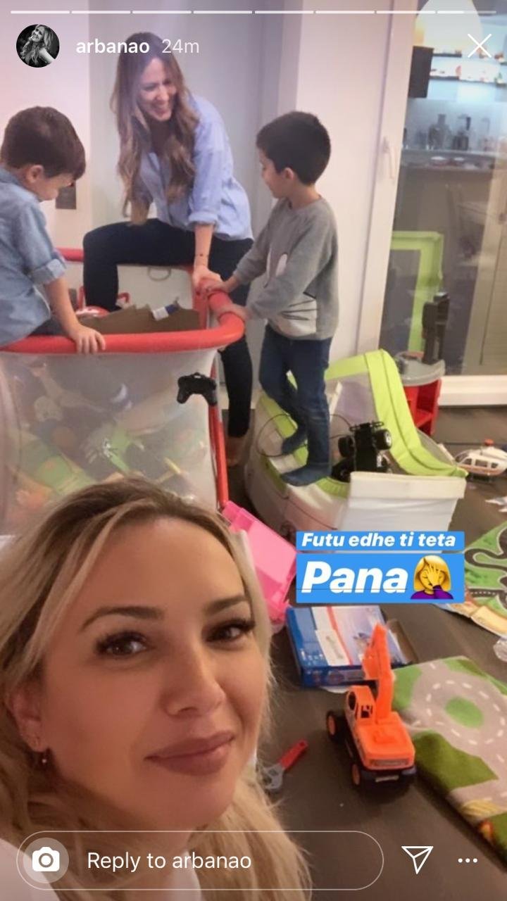 Ndërsa sot Arbana na tregoi një çast tjetër kur ajo po luante me Jonin dhe djalin e Xhemit teksa kjo e fundit po bënte një “selfie”.