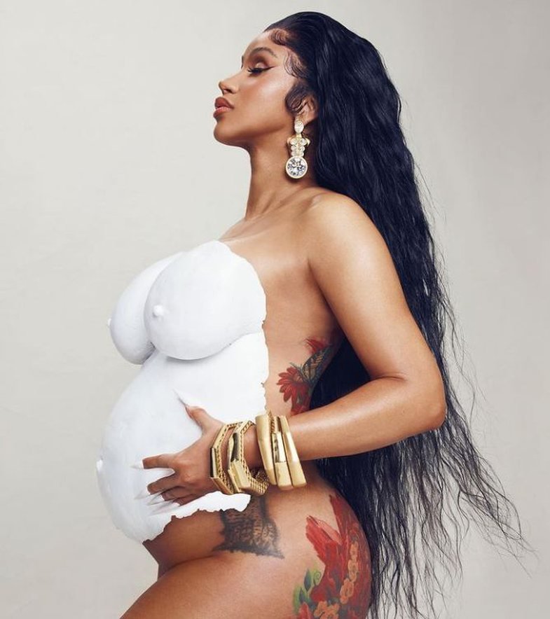 Pak pas eventit, Cardi e zyrtarizoi edhe përmes Instagram-it shtatzëninë e dytë. Orë më parë ajo postoi një foto nudo, kur barku i rrumbullakosur ishte i lyer me bojë të bardhë.