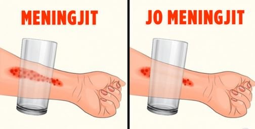Skuqjet e lëkurës janë gjithashtu të mundura me meningjitin. Me këtë test, është shumë e lehtë për të zbuluar një skuqje të thjeshtë që nuk është e lidhur me meningjitin.