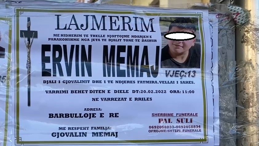 Korespondenti i Panorama bën me dije se 13-vjeçari Ervin Memaj, banues në Rrilë të Lezhës, ka humbur jetën këtë të shtunë në Spitalin e Traumës në Tiranë ku ishte shtruar prej disa ditësh.