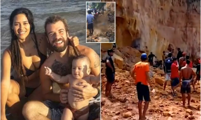 Dy prindër të rinj dhe foshnja e tyre shtatë-muajshe janë shtypur për vdekje kur një copë nga shkëmbi i lartë u shemb mbi ta në një plazh në Brazil.