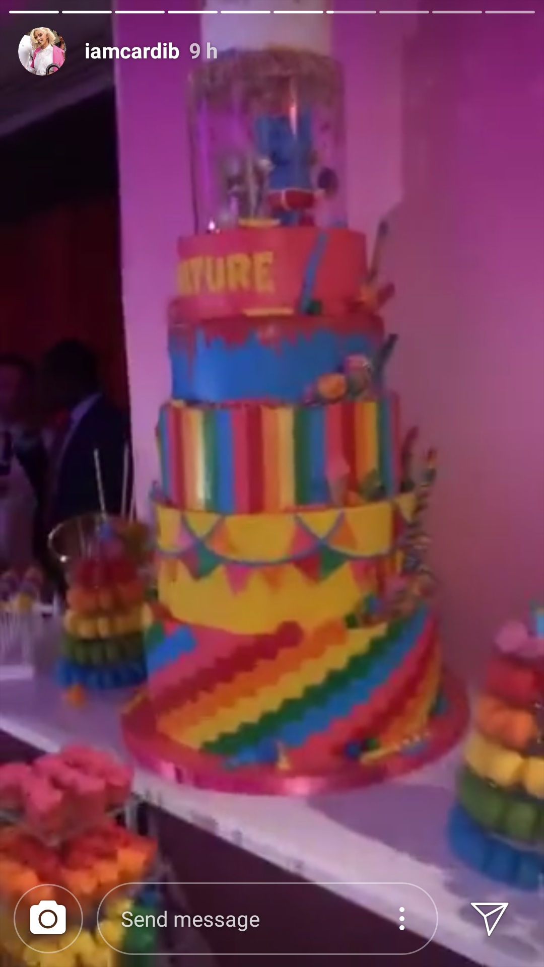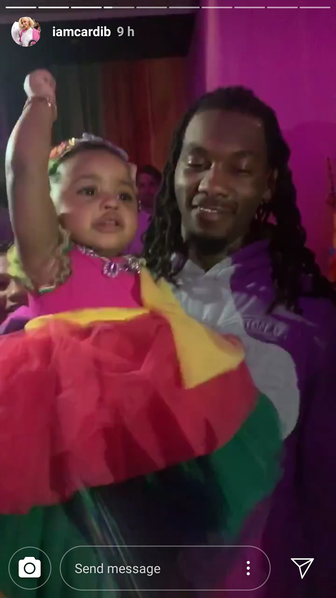 Kur vajza e saj mbushi 1 vjeç, Cardi B i organizoi Kulture një surprizë minimaliste në ambientet e shtëpisë, me tullumbaca dhe disa kek të vegjël. Mesa duket, ky ka qenë vetëm fillimi i një feste madhështore dhe të ‘çmendur’ njëkohësisht. Reperja ka publikuar disa video në ‘Instastory’ ku ka zbuluar disa nga detajet e festës. Fillimisht, gjithçka i është përshtatur temës së mbrëmjes, e cila dallohet të jetë ‘ylberi’. Duke filluar nga fustani i Kulture, veshja e Cardi B, 2 tortat gjigande, tullumbacët e varur kudo apo dhe kekët e vegjël, kudo mbizotëronin ngjyrat e ndezura. Salla ka qenë e mbushur plot me njerëz, kolegë dhe miq të saj dhe Offset, ku sigurisht nuk kanë munguar pijet apo performancat e këngëtarëve. Kujtojmë se Cardi është cilësuar si një nga artistet më të suksesshme të këtij viti, por pavarësisht axhendës shumë të ngjeshur me koncerte dhe turne, duket se reperja nuk e lë asnjëherë pas dore familjen e saj.