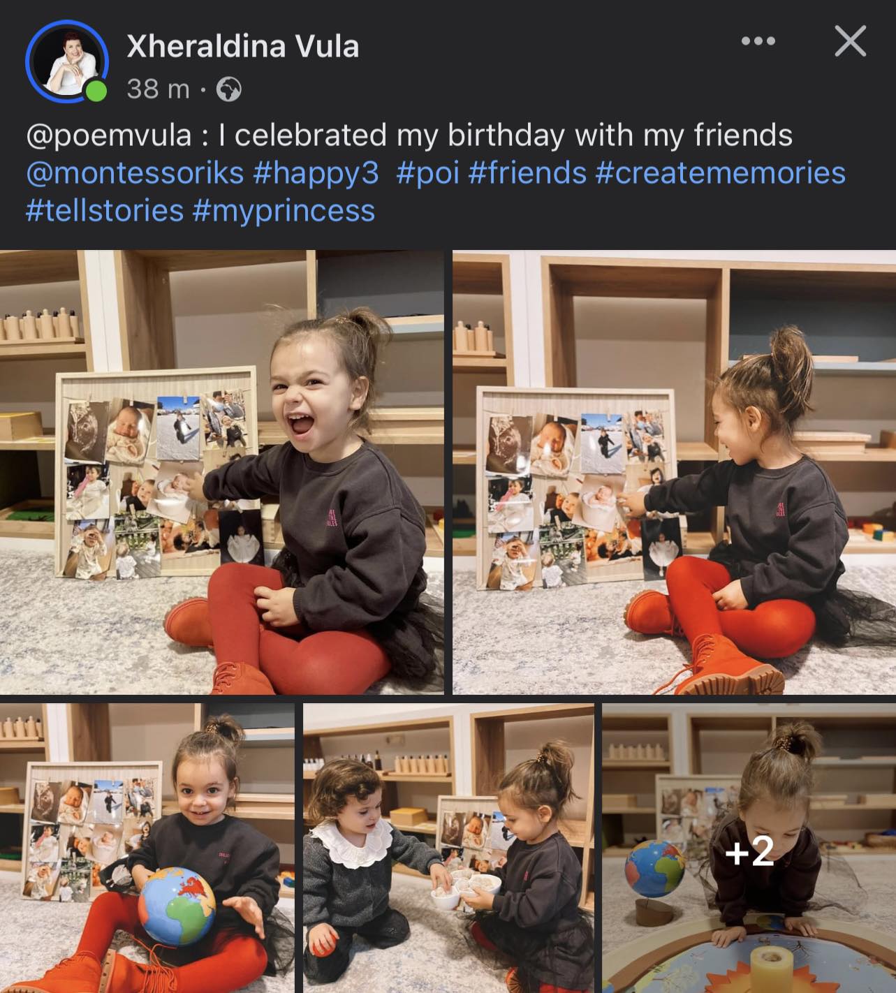 Këtë gjë e ka treguar gjyshja e Poem Blu, gazetarja Xheraldina Vula, e cila ka ndarë me ndjekësit disa foto të mbesës së saj.