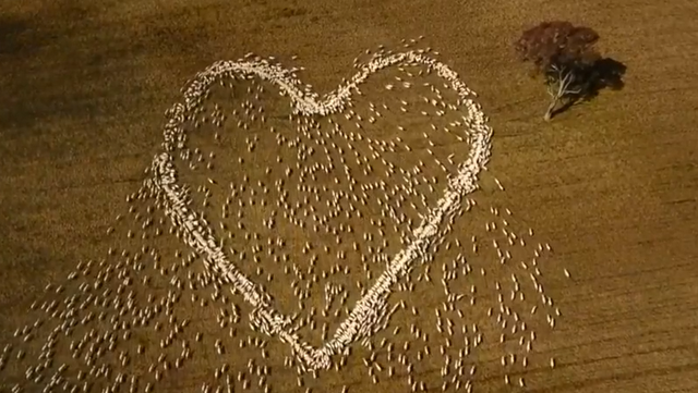 Jackson ka lëshuar grurë në formë zemre në njërën prej arave të tij dhe më pas ka lëshuar kopenë. Mijëra dele kanë nxituar për të ngrënë, duke formuar një zemër të veçantë.