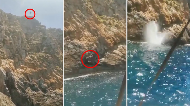 Turisti 31-vjeçar holandez shihet që bëhet gati të kërcejë në ujë nga të paktën 30 metra lartësi, të enjten në ishujt Malgrats.