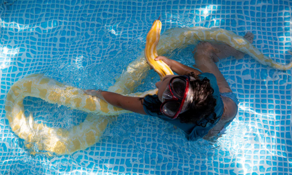 VIDEO/ Vajza 8-vjeçare që noton me pitonin në pishinë dhe bashkëjeton me të