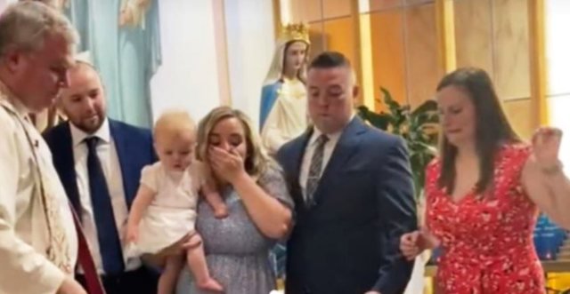 Candace Williams ishte duke bërë një video gjatë pagëzimi të djalit të saj, Sullivan, kur ai papritur ka goditur librin që prifti mbante në dorë, duke përfunduar në ujin e shenjtë.