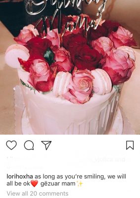 Në familjen Hoxha sot ka festë. E zonja e shtëpisë dhe shtylla e familjes, Vjollca Hoxha ka ditëlindjen. Sigurisht që urimin e parë për të nuk kishte kush ta dërgonte tjetër përveç së bijës, Lori. Kjo e fundit shpesh na ka emocionuar me fjalët që thotë. E njëjta gjë ndodhi edhe këtë herë kur Lori gjeti fjalët e duhura për të uruar të ëmën në ditën e lindjes.