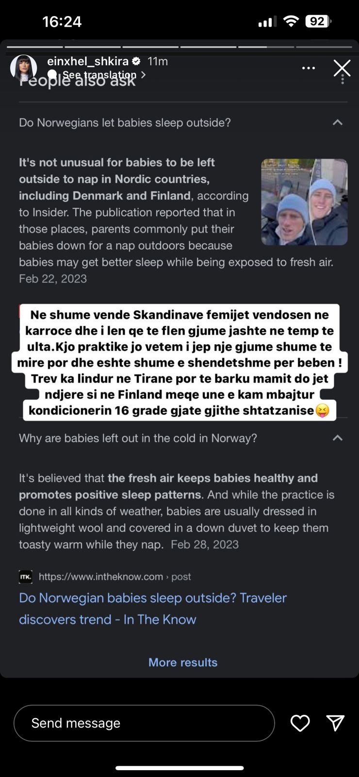 Më tej, Einxhel shpjegoi se metoda e të fjeturit të bebeve jashtë praktikohet shumë shpesh në vendet si Finlanda.